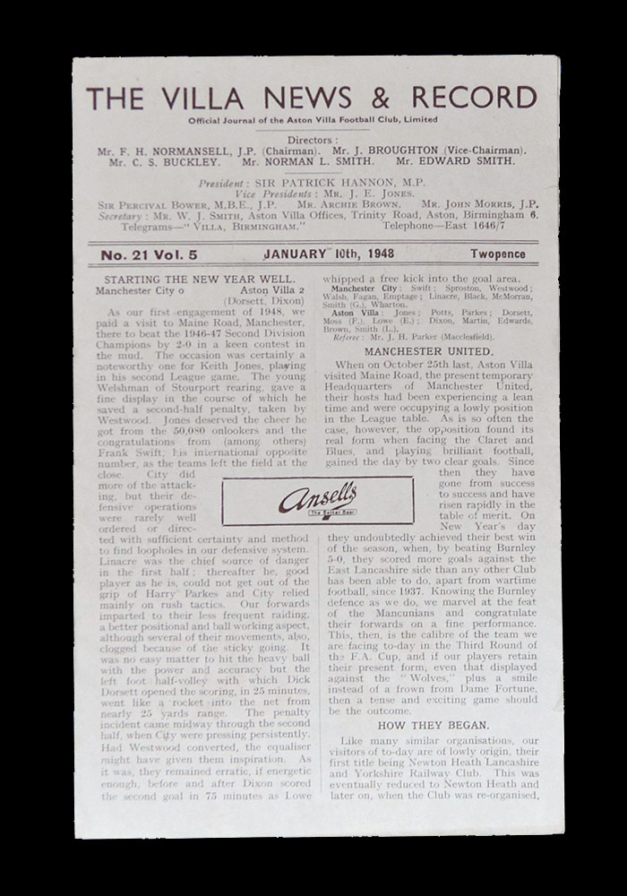 Man Utd v Aston Villa 25.10.1947