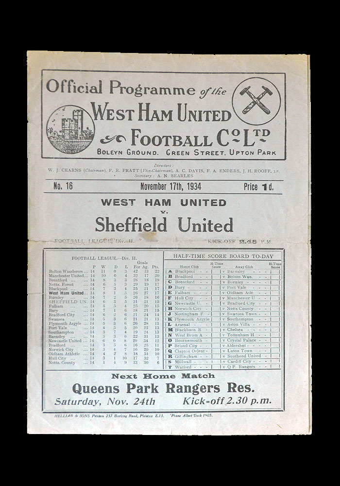 West Ham v Sheff Utd 17.11.1934